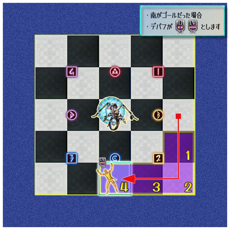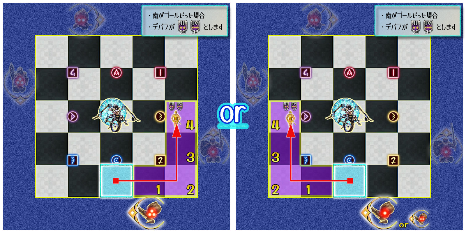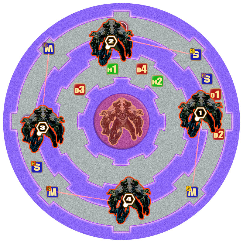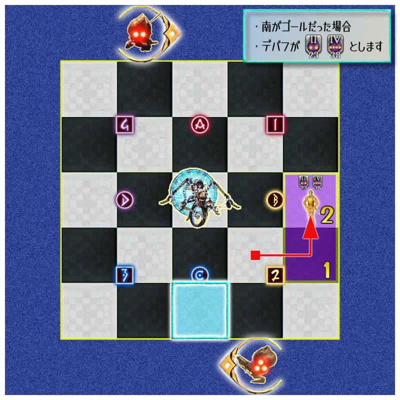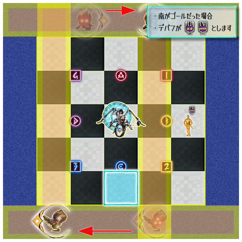 |処理順:青→緑→白→赤(担当以外はゴーレム削り) ※雑魚ゴーレム&罠(サイトラ):北=C/H1(罠/北西) 南=C/H2(罠/北東)