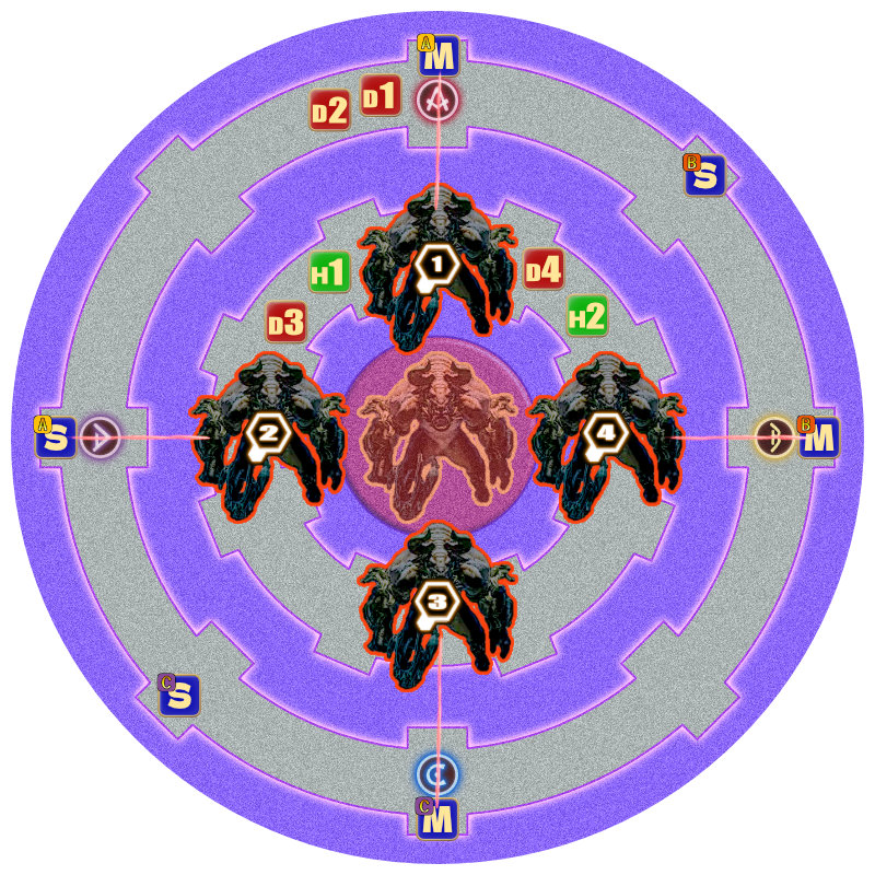 |ディスペル:ABCアラ/H1 ※PT内H1死んでいる場合:D3