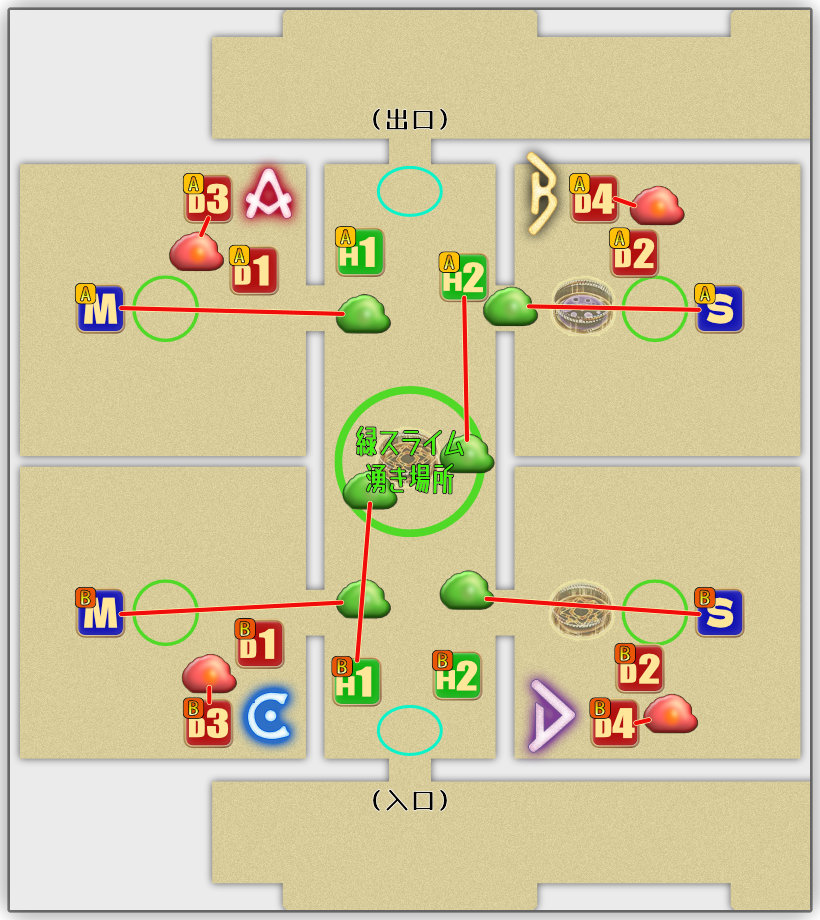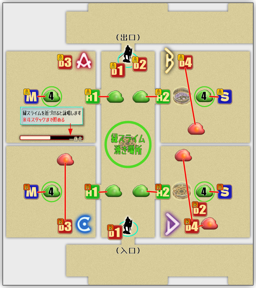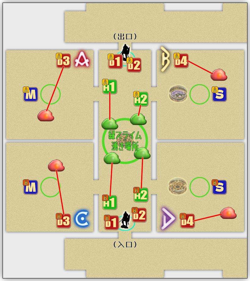 |緑誘導:A/H1 | | 緑誘導:A/H2 ※H:担当部屋へ緑スライム誘導>ソルジャー