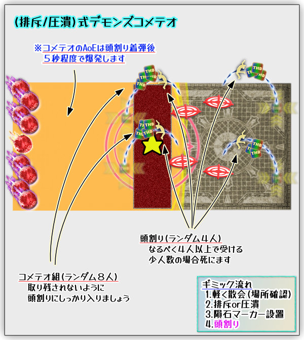 |※外周メテオに炎(隕石)マーカー捨て、その他は何も無い方で完結