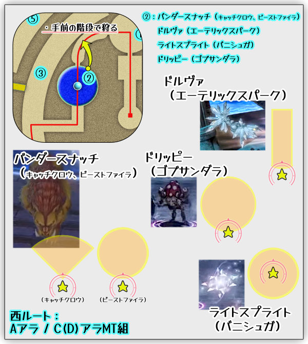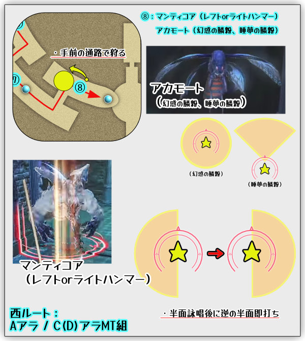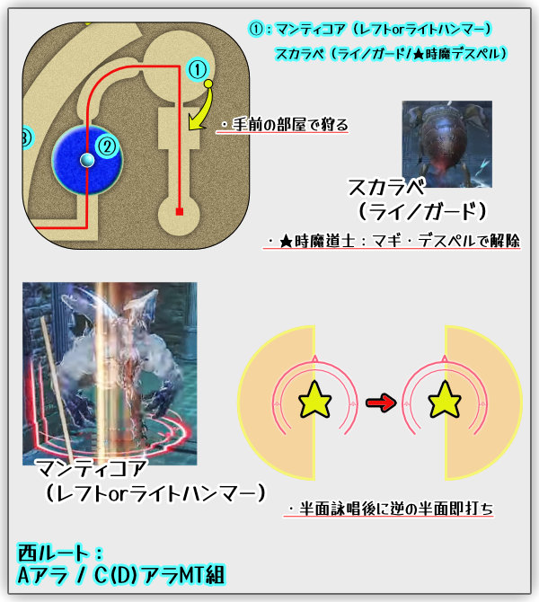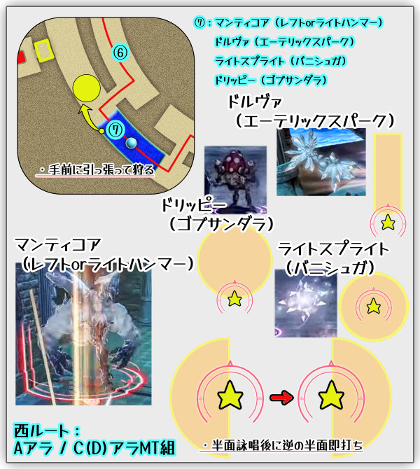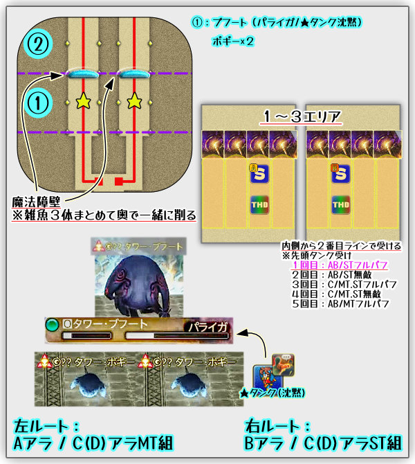 |北 1 2 3 |※各雑魚担当T以外 1 (Aアラ/MT組&Dアラ/MT) A (Bアラ/MT組&Dアラ/ST)