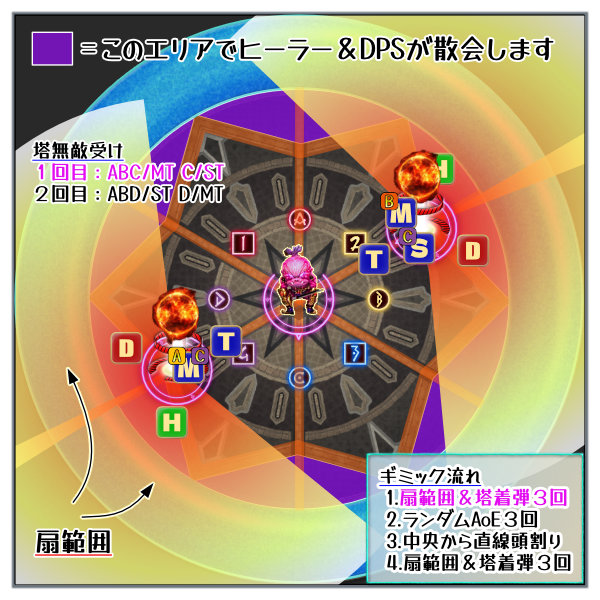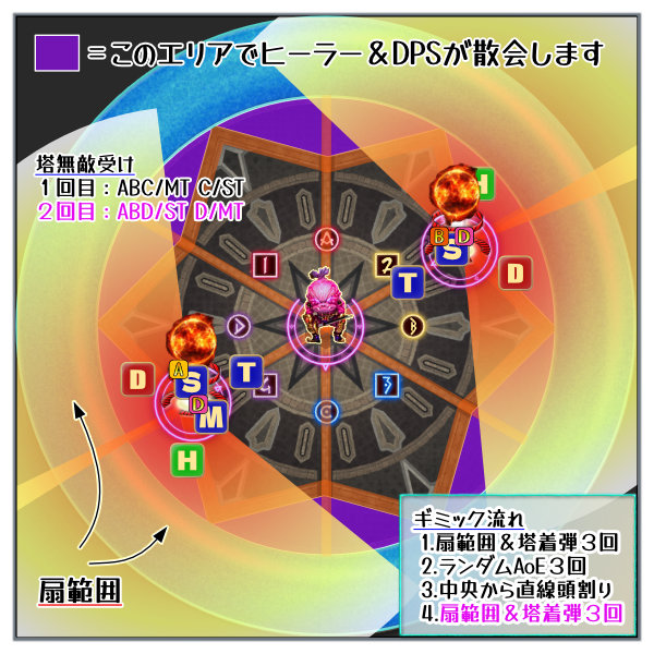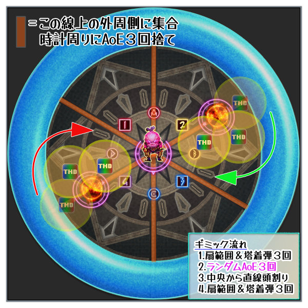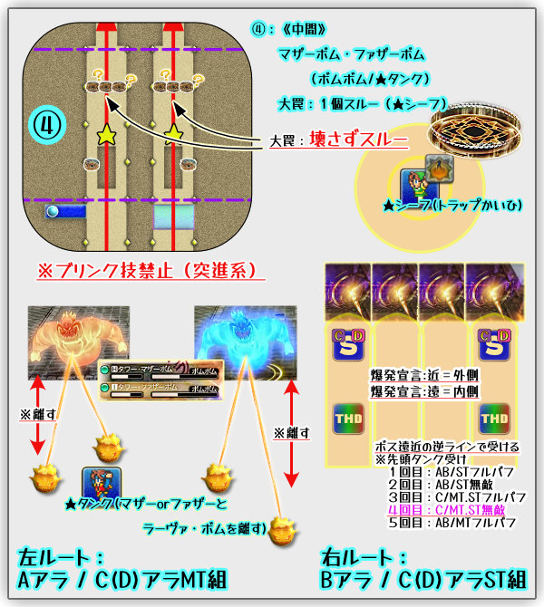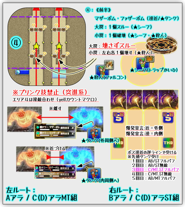 ┃④ (中)│「大罠1★全員スルー」「ボム沸き★AC/MT(離す)」「直線AoE★C/MT.ST(無敵)」